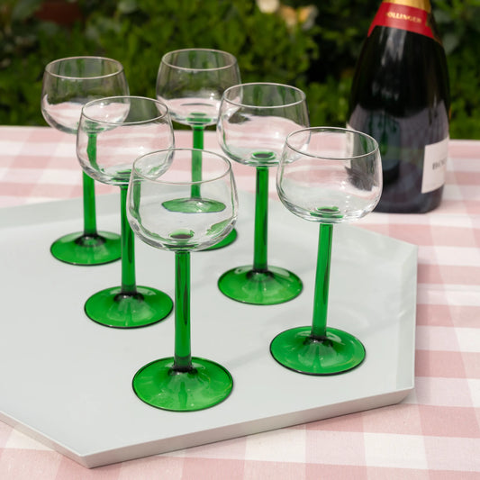 Retro French Green Stemmed Wine Glasses