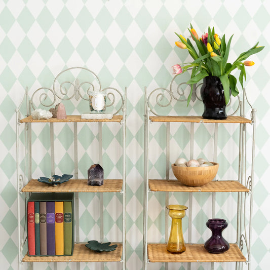 Pair of Vintage Iron Rattan Shelving Unit