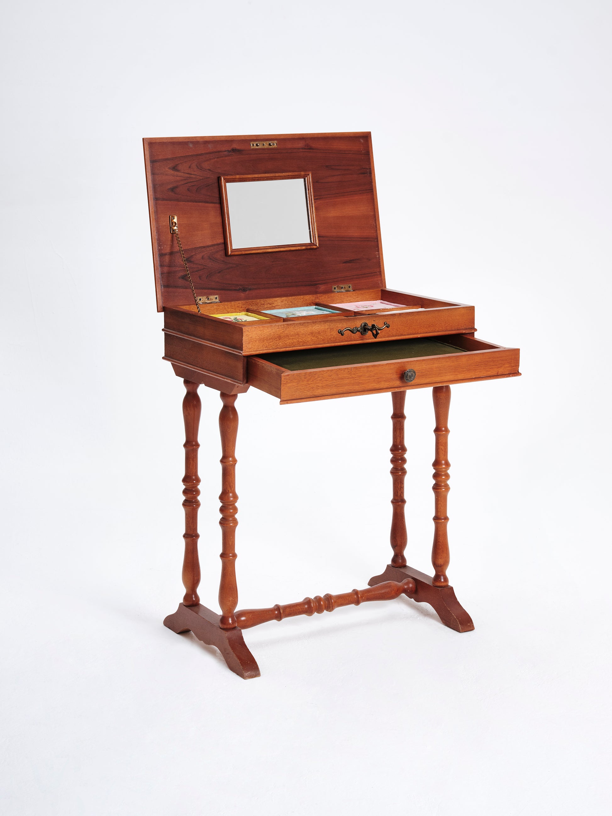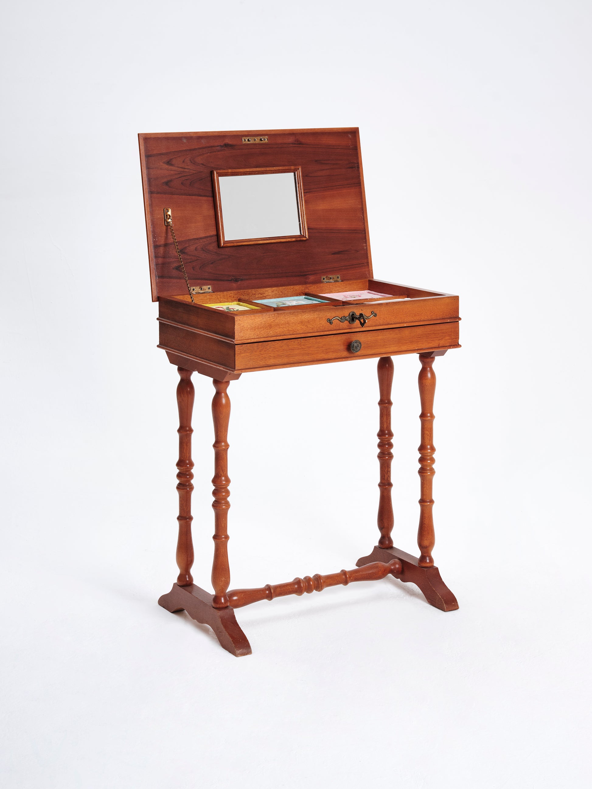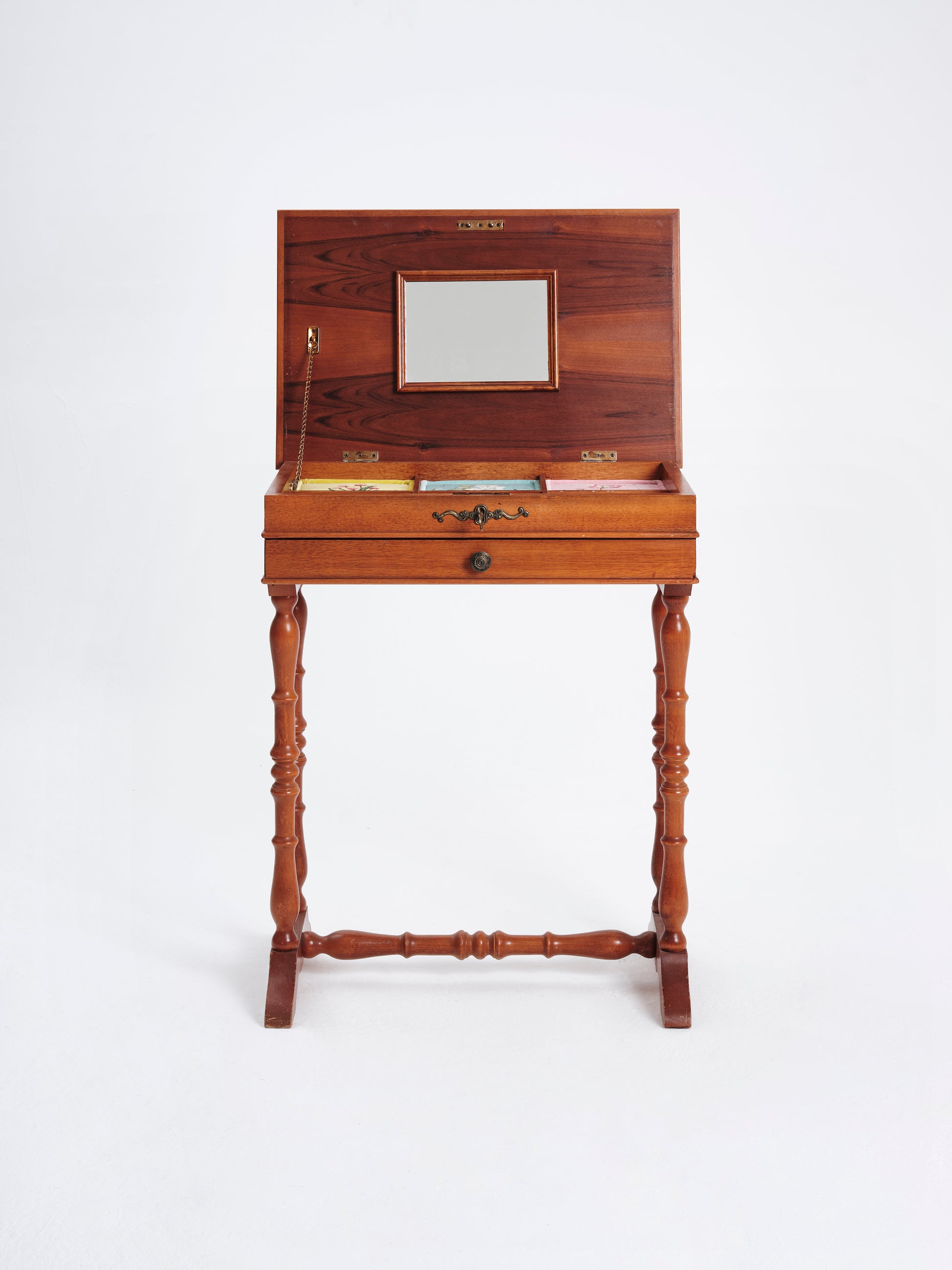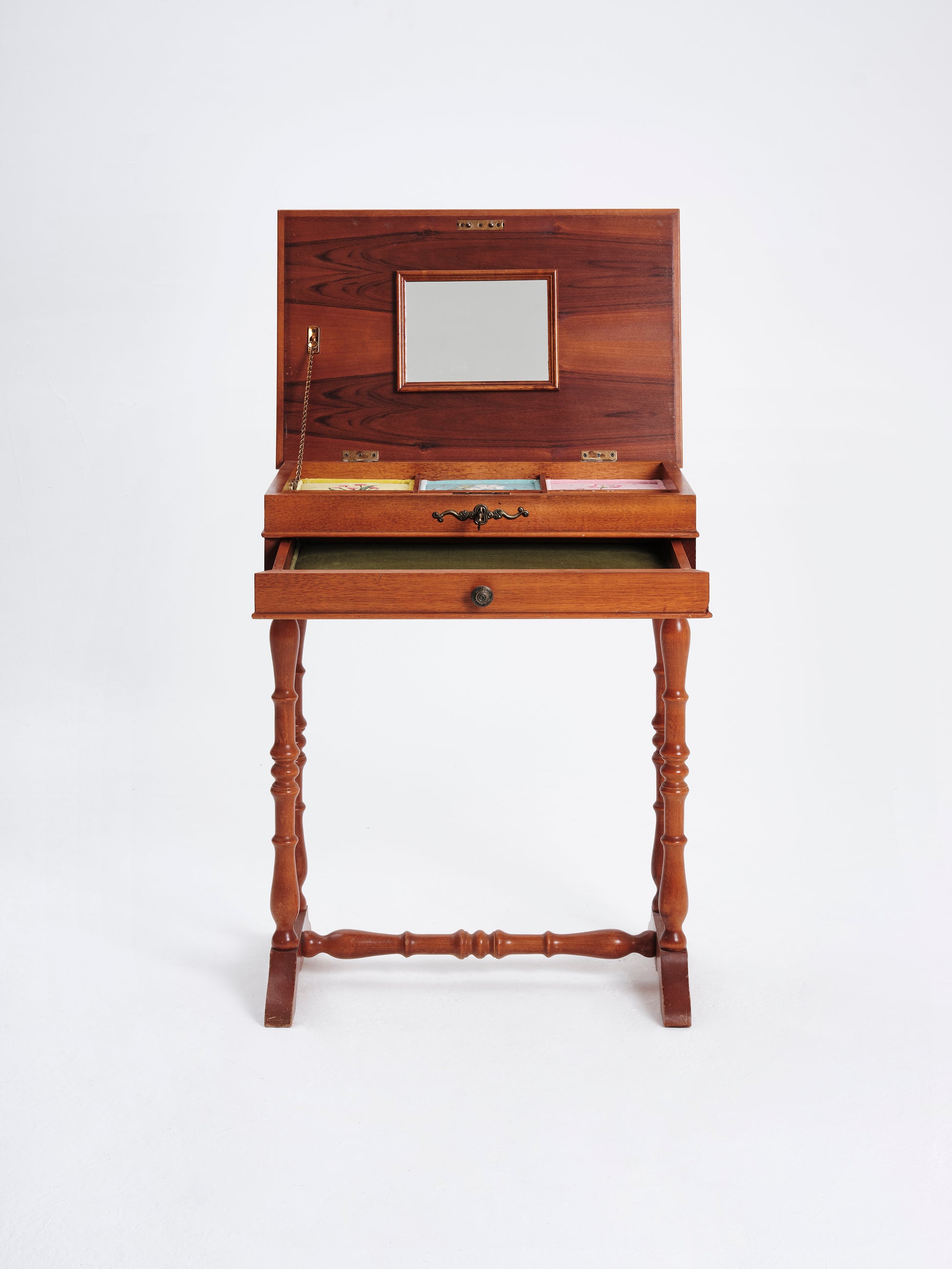 Crafted from sustainable wood, this jewellery box table exudes eco-friendliness and carries a sense of character and uniqueness with every grain and imperfection. With a strategically built in mirror and secure closures to safeguard your precious possessions-This Jewellery Box is the investment piece of today.