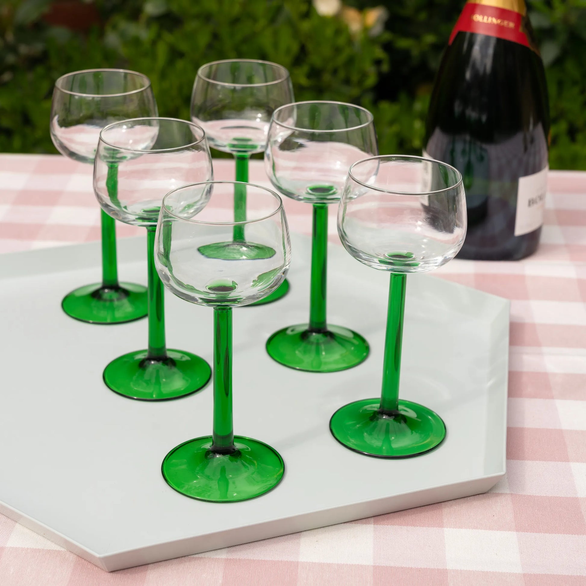 Discover Timeless Elegance: Retro French Green Stemmed Wine Glasses