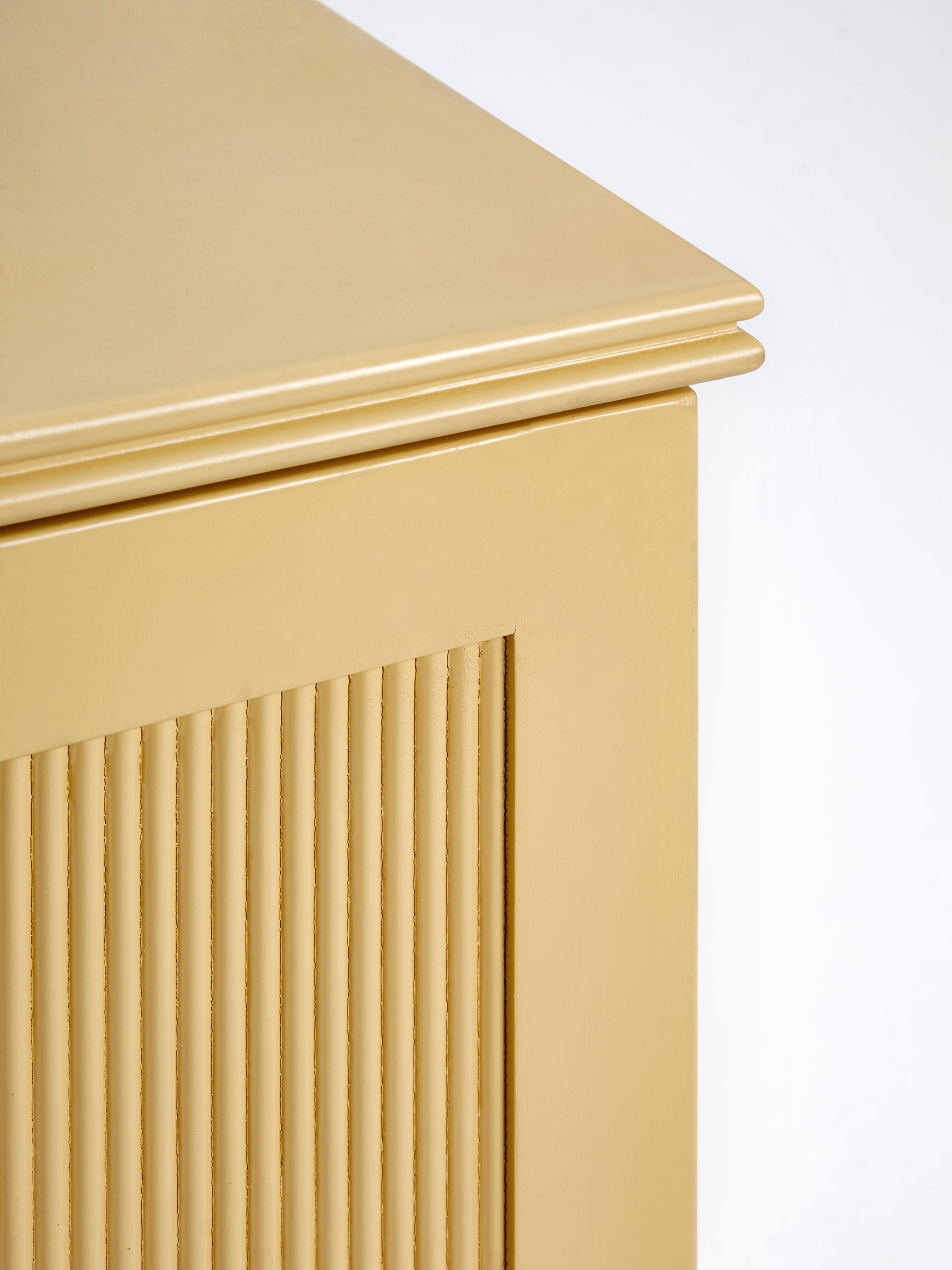 The Cabinet showcases a sturdy MDF construction with a mesmerising reeded wood inset. The textured accents add depth and character, making it a true statement piece.
